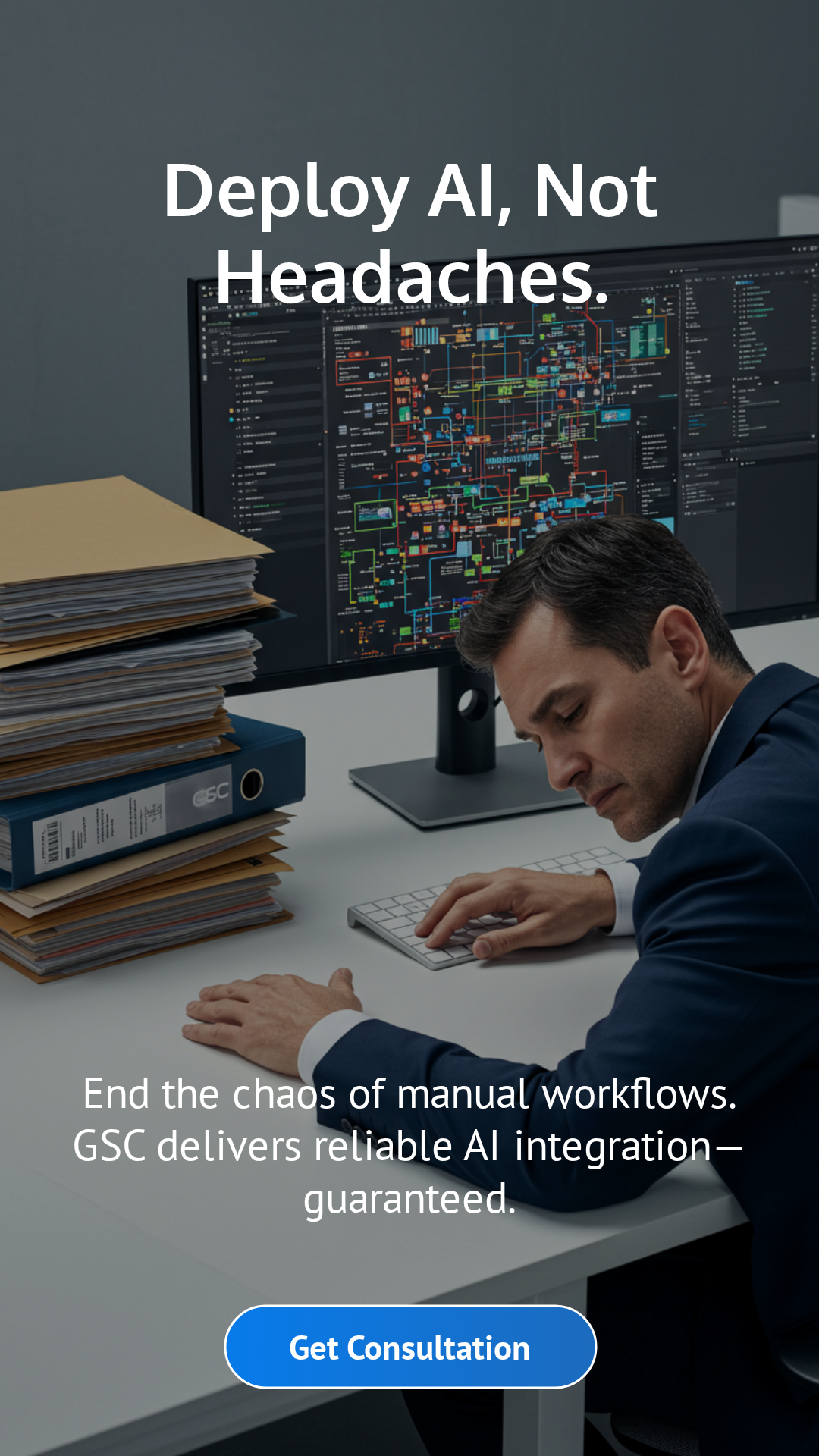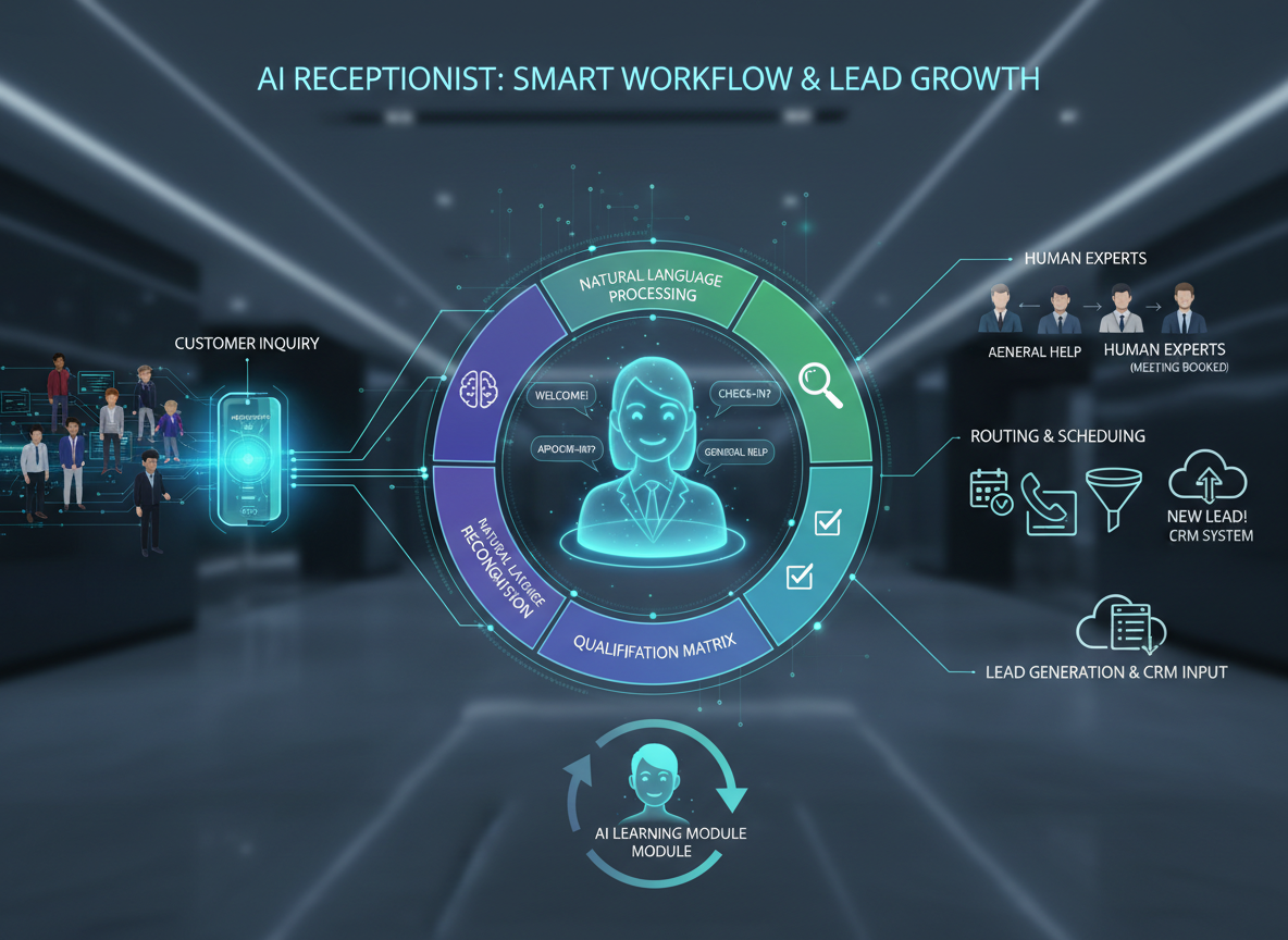 Turn Every Conversation into a Qualified Lead. Sub-headline: Meet the GSC SmartOps AI Receptionist—the automated workflow that works 24/7. Capture inquiries, qualify prospects, and book appointments instantly, so you never miss an opportunity again.