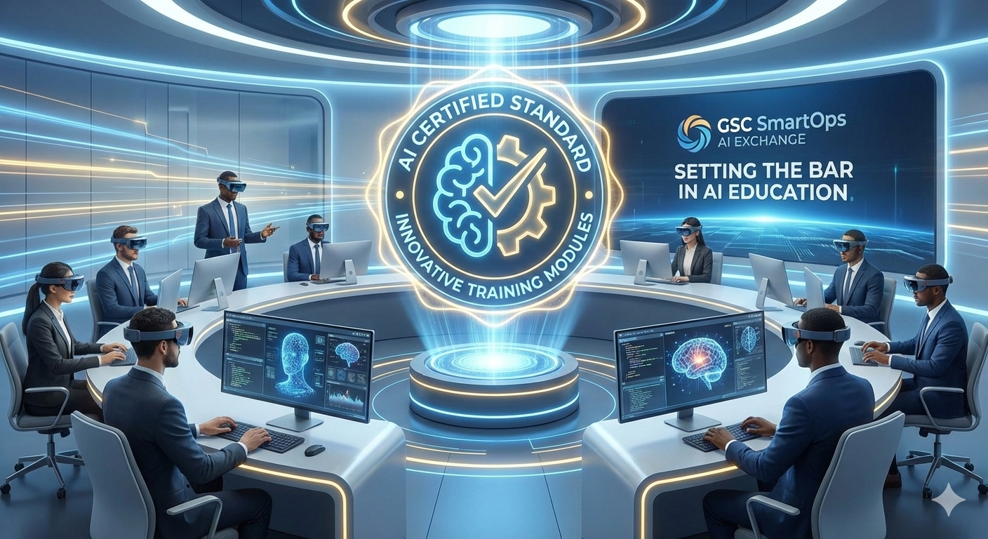 Setting the Standard for AI Excellence. Sub-headline: Don’t just learn AI—master it. GSC SmartOps delivers innovative training modules that define the industry benchmark. Elevate your skills, earn the certification that matters, and lead the future of intelligence.